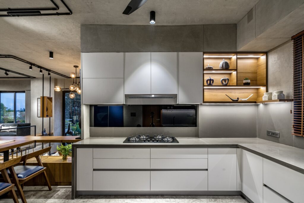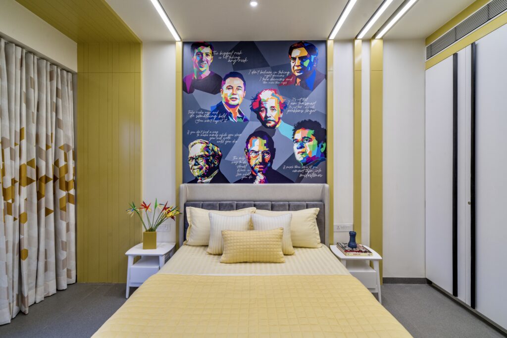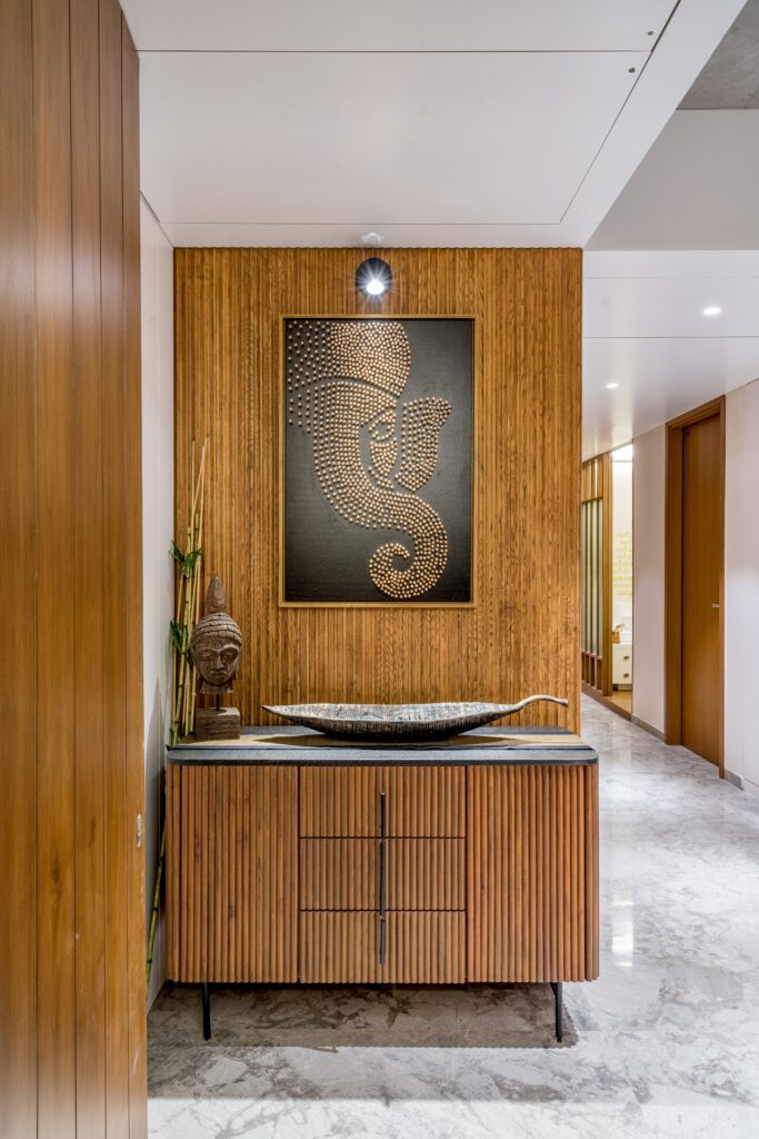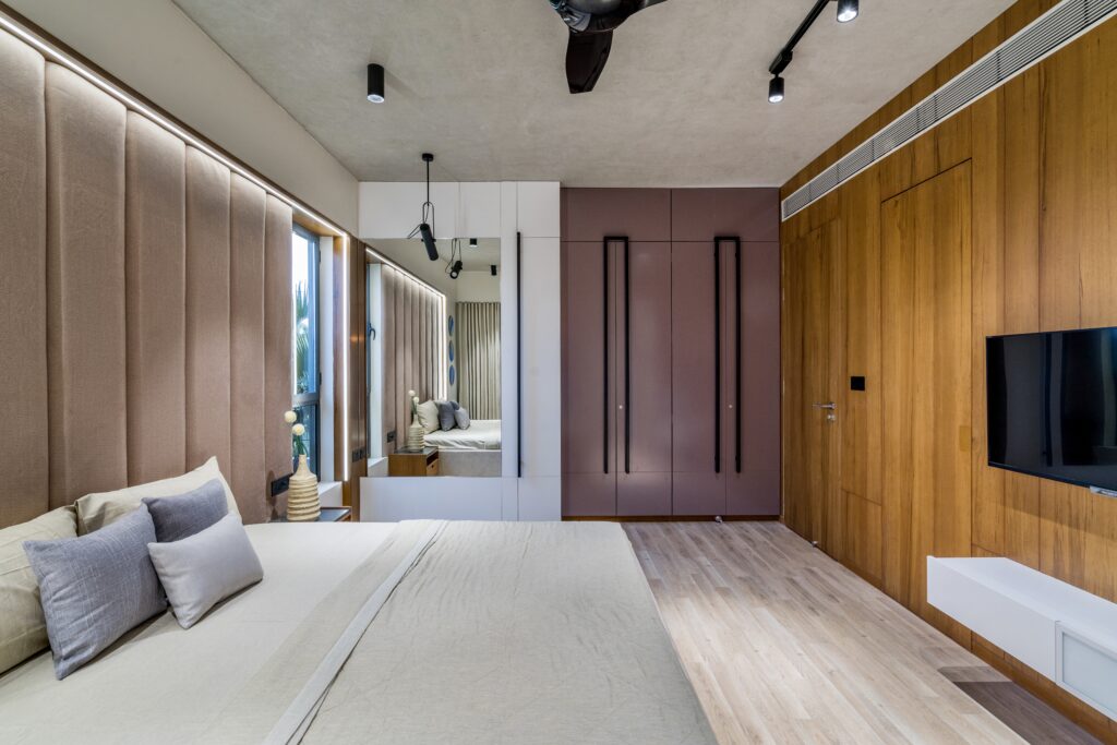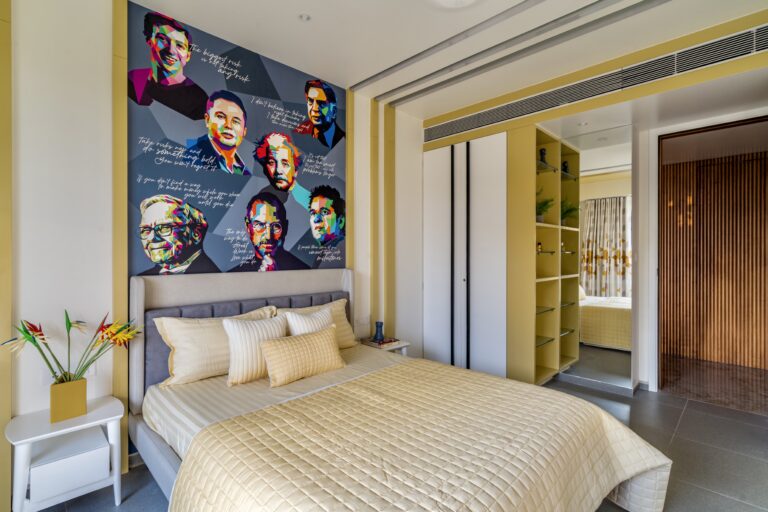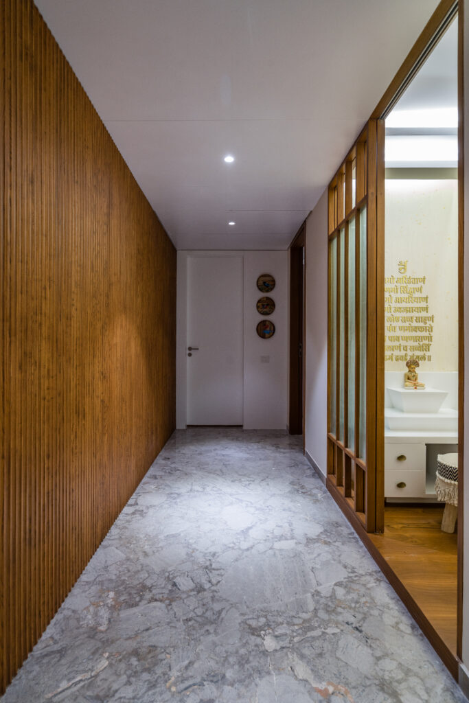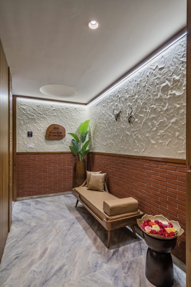 Located in one of Ahmedabad’s most sought-after residential complexes, this split-level apartment is part of a development known for its plantation-lined façades and spacious layouts. Designed for a young couple eager to move away from design stereotypes, the home reflects a bold yet balanced approach that synchronizes architecture with interiors.